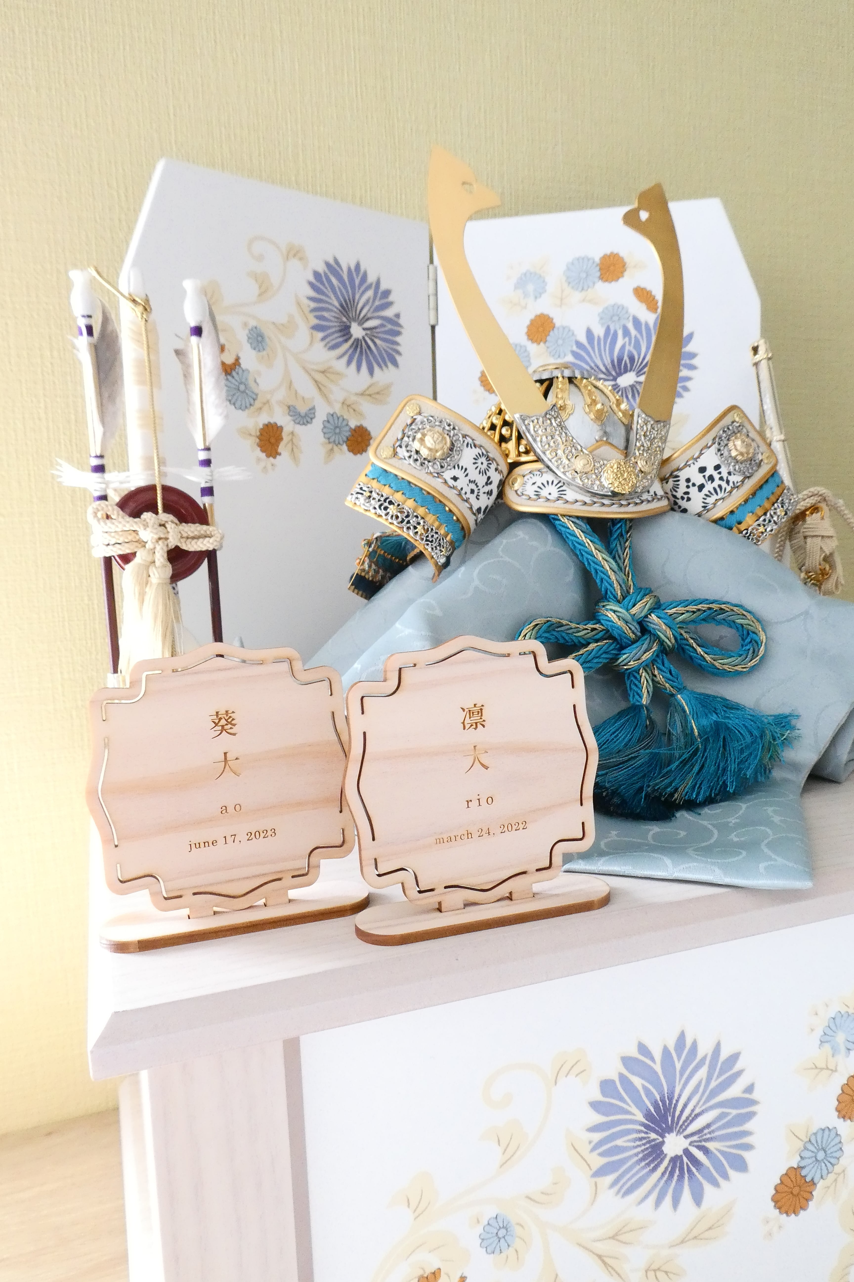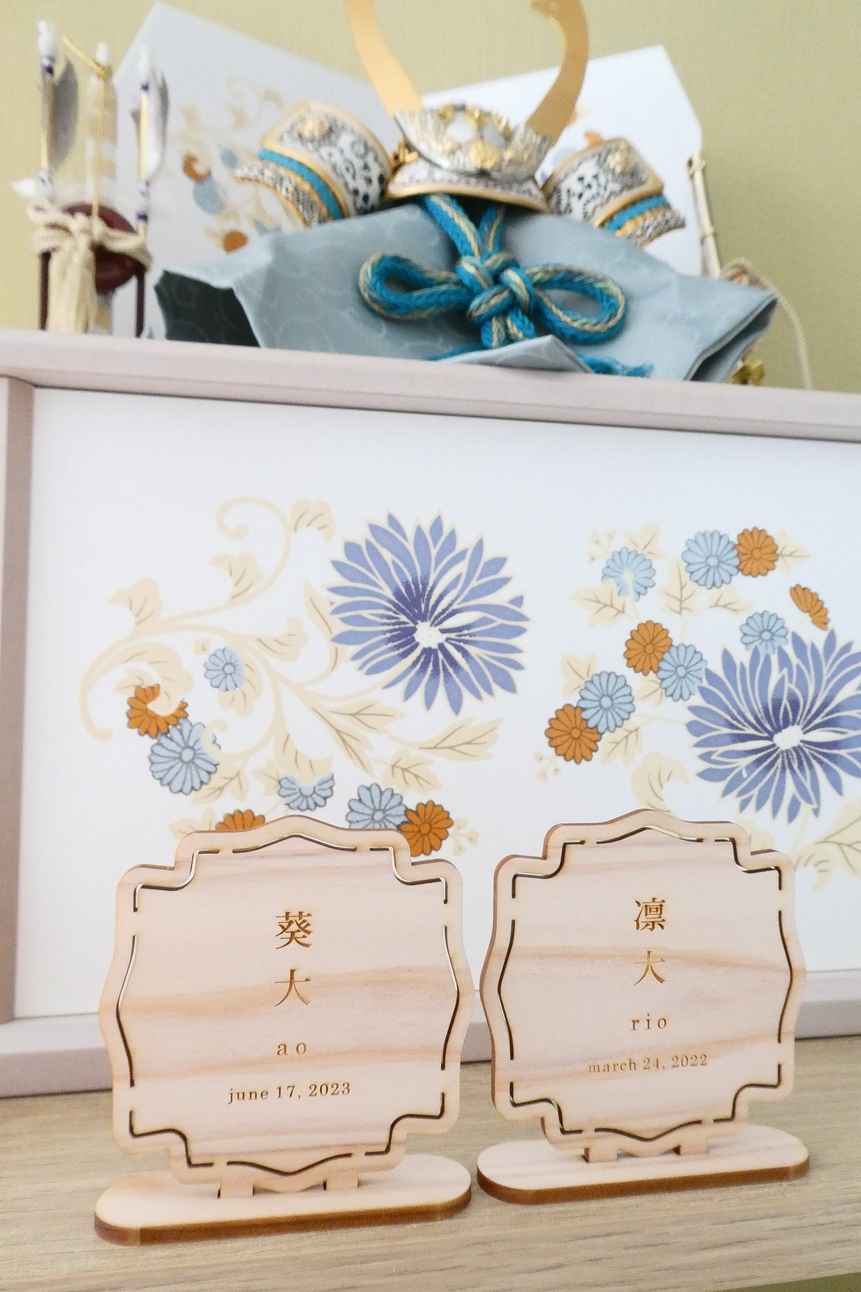 wooden name plate : boy【木製お名前札|兜飾り|五月人形|命名札】