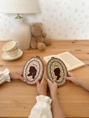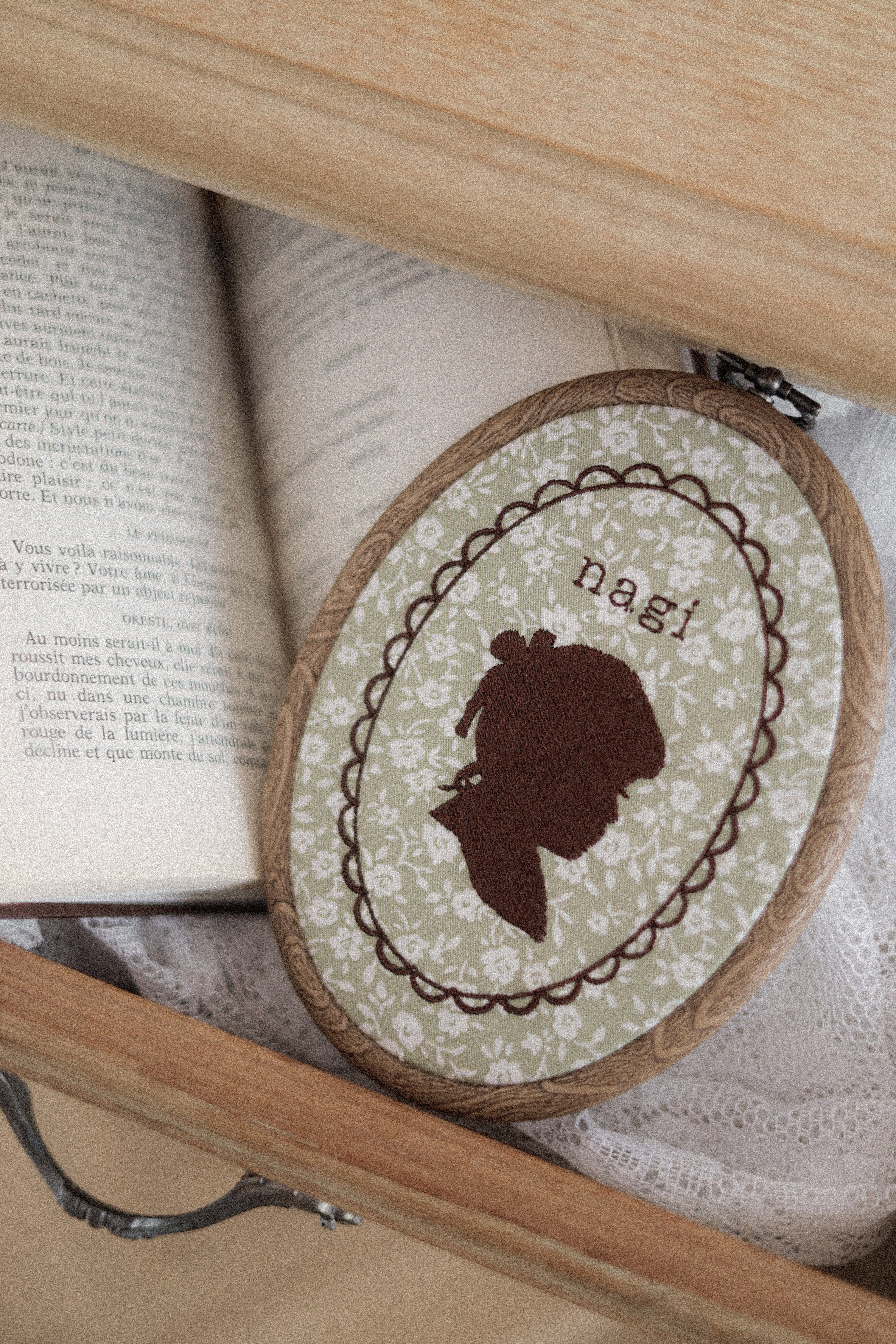 ・シルエットは刺繍で表現するため、髪の毛など細かな部分の再現が難しい場合がございます。