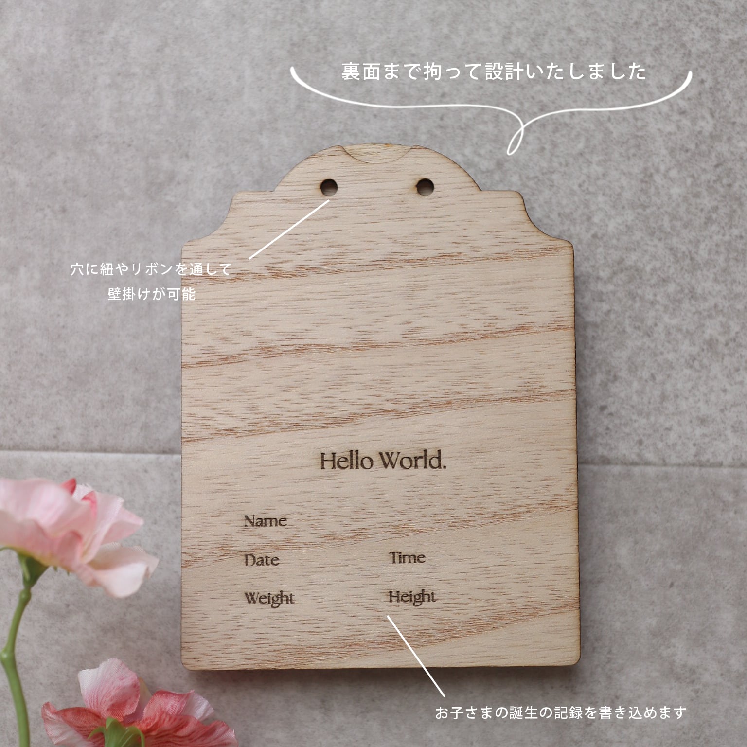 裏面には出生データを書き込めるスペースをご用意。